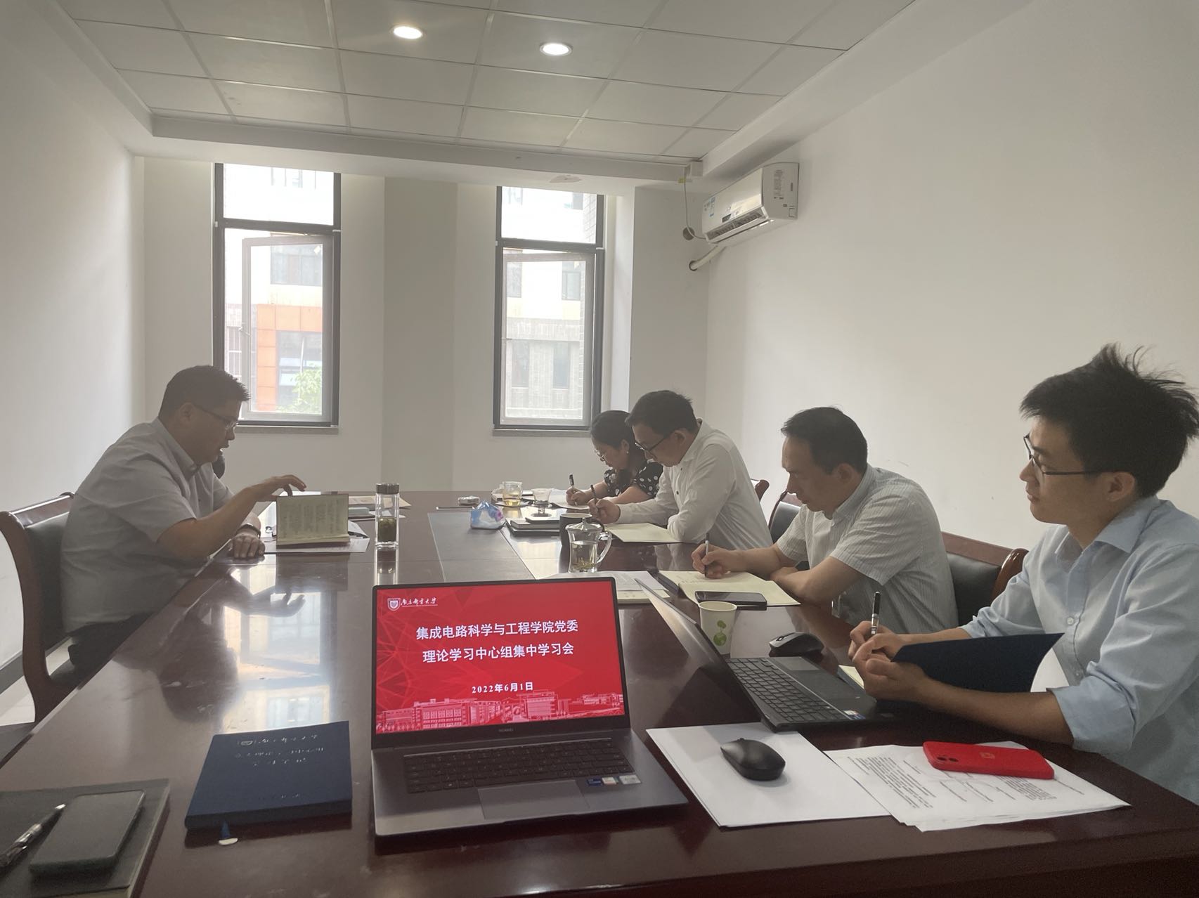 6月1日中午,集成电路科学与工程学院党委理论学习中心组在仙林校区电光B楼212会议室专题学习习近平总书记给南京大学留学归国青年学者重要回信精神。学院党委理论学习中心组组长、院党委书记高翔主持学习会,理论学习中心组全体成员参加了会议。