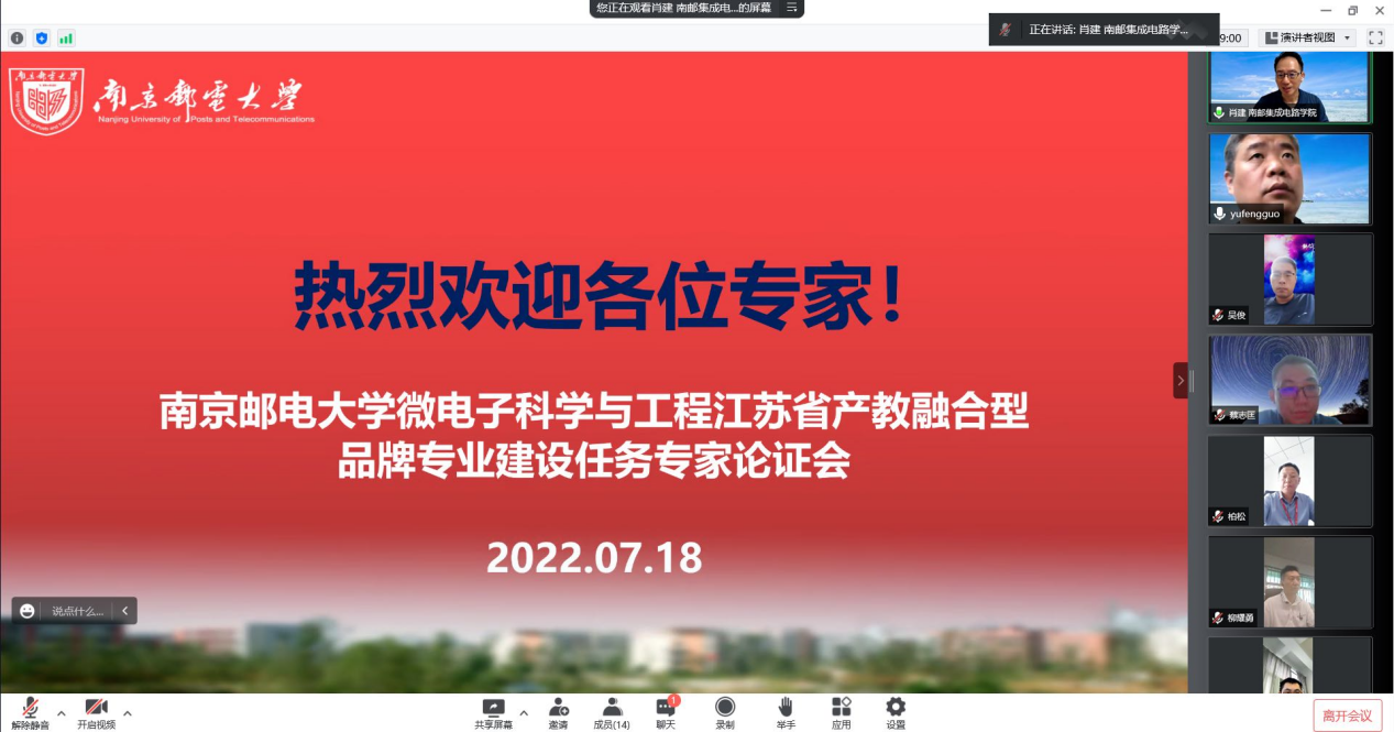 郭宇锋副校长首先致辞,对校内、外专家的莅临指导表示欢迎,着重介绍我校关于产教融合方向的探索,强调产教融合已经成为我校人才培养重要一环。肖建副院长对品牌专业建设任务书、总体建设目标与预期标志性成果、分相建设内容与预期目标、项目来源及预算等内容作详细汇报。随后,专家组与黑料不打烊 教师针对产教融合型品牌专业建设任务书进行了提问与质询,就平台共享、产教融合建设方向、合作与交流机制、企业导师积极性调动、双导师模式建立进行了充分的交流和沟通,与会专家提出了宝贵的修订意见与建议,一致通过了微电子科学与工程江苏省产教融合型品牌专业建设任务书。