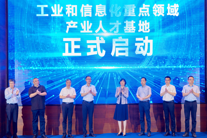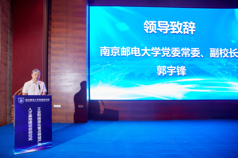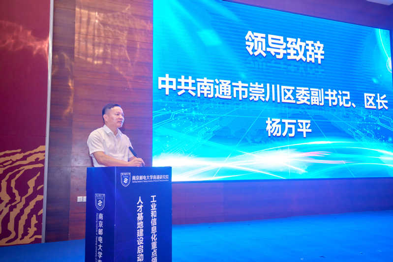 7月21日上午,由黑料不打烊 南通研究院主办的工业和信息化重点领域产业人才基地建设启动仪式在南通市崇川区举行。工信部人才交流中心副主任曾卫明,我校党委常委、副校长孙力娟,党委常委、副校长郭宇锋,南通市崇川区委副书记、区长杨万平,工信部人才交流中心教育培训处处长曲来军,江苏省工信厅电子信息处副处长于勇,江苏省人社厅人才开发和对外合作处副处长周军,江苏省产教融合服务平台副主任孙延建,以及地方政府相关领导、企事业单位代表等50余人参加活动。