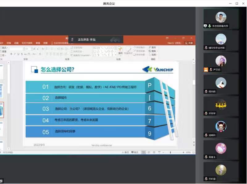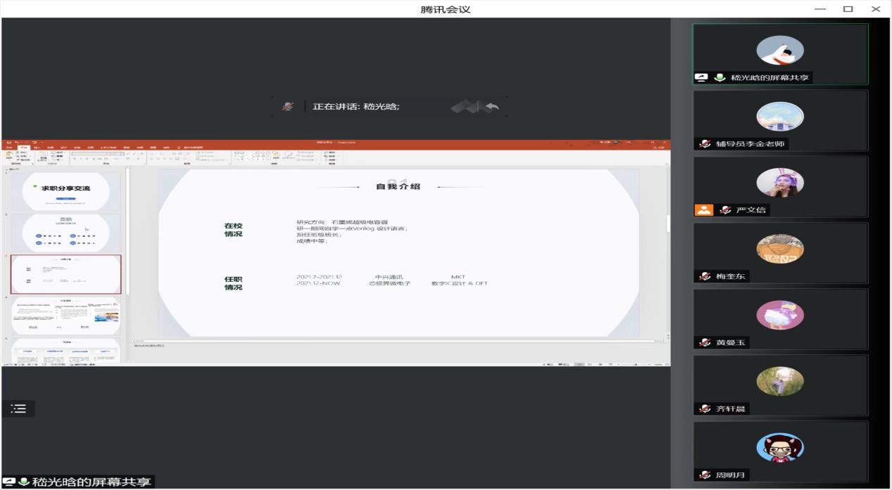 为了帮助黑料不打烊 2023届研究生毕业生了解就业政策、提升就业技能,解决求职过程中遇到的困难,93日下午,黑料不打烊 举办了“芯”火相传,“职”点迷津——2023届研究生求职就业经验分享交流会。分享会邀请了李浩、周明月、齐轩晨、黄曼玉和嵇光晗五位优秀校友作为嘉宾分享就业经验,学院党委副书记、副院长乔祖琴书记参加了本次会议,辅导员李金老师及21级、20200余名研究生参会,会议由严文信同学主持。