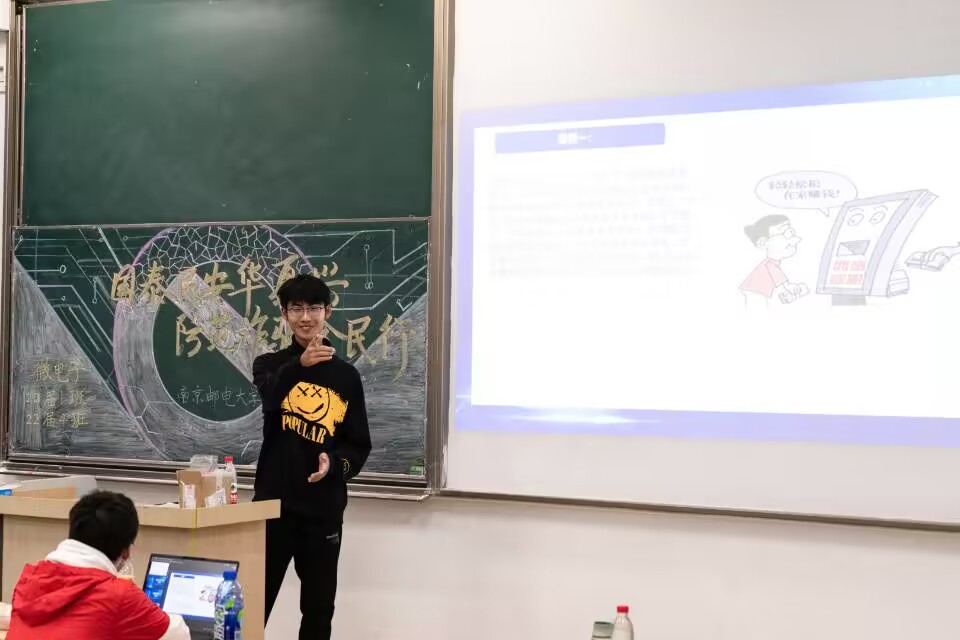随后,主持人邱佳霖为同学们播放并讲解了两则反诈宣传片。宣传片以风趣的语言、夸张的表现,在俘获同学们笑点时也使防诈意识深入人心。