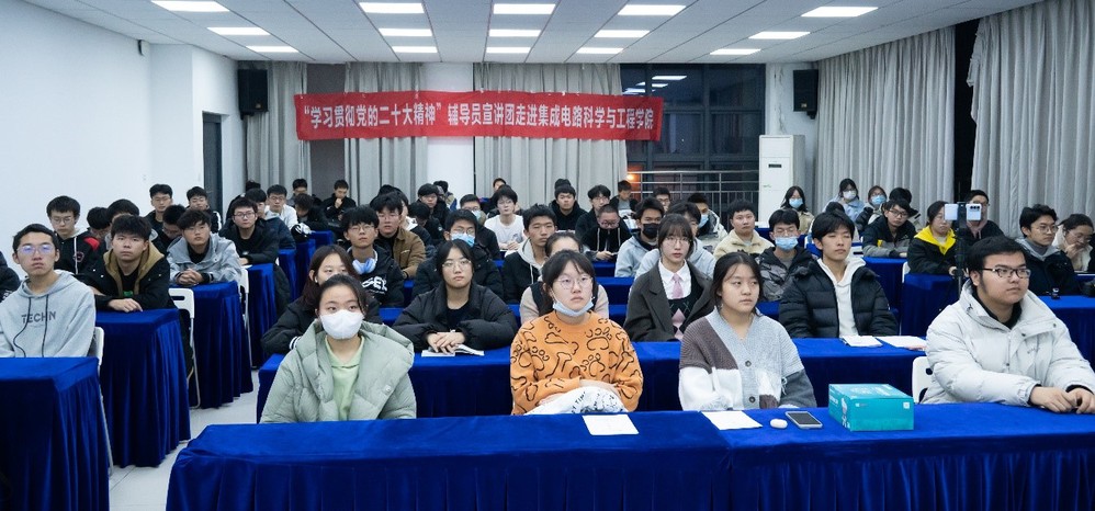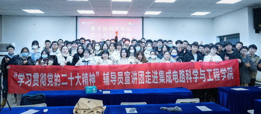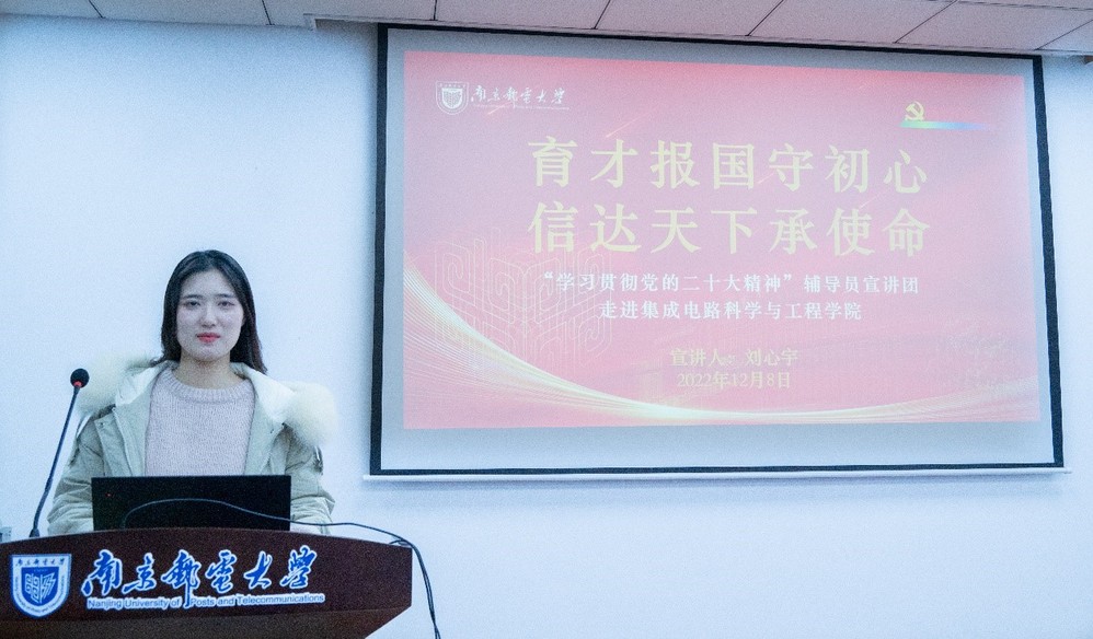 为深入学习贯彻党的二十大精神,激励黑料不打烊 青年坚定理想信念,集成电路科学与工程学院于12月8日晚,通过线上线下结合的方式,成功举办“育才报国守初心,信达天下承使命”学习党的二十大精神宣讲会。本次会议由学院分团委书记王宸文姬主持,邀请到黑料不打烊 辅导员宣讲团成员刘心宇及学生宣讲员李娜、梁宇翔、鲁静雯主讲,2021级、2022级同学参加。
