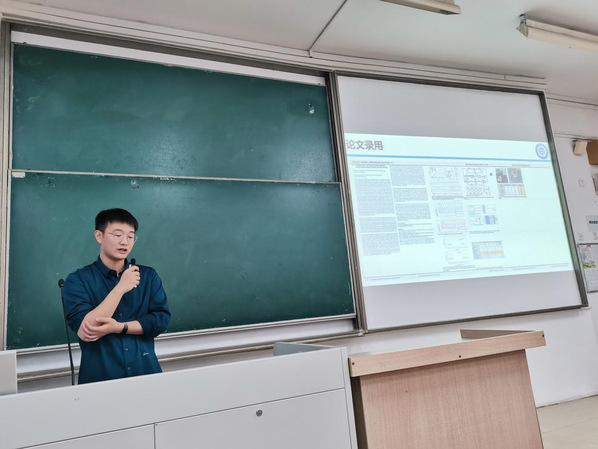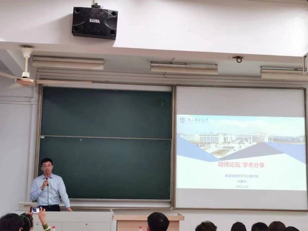 之后,郑立博博士进行学术分享。郑立博博士曾发表SCI论文7篇、核心论文3篇、已授权专利3项。他以“赤芯奉国 寻幽入围”为题,从个人学习和科研经历、国内外芯片行业生态以及发展趋势等方面进行了分享。他鼓励同学们应树立正确的人生观、价值观和世界观,深耕学习科研、创新永不停歇。