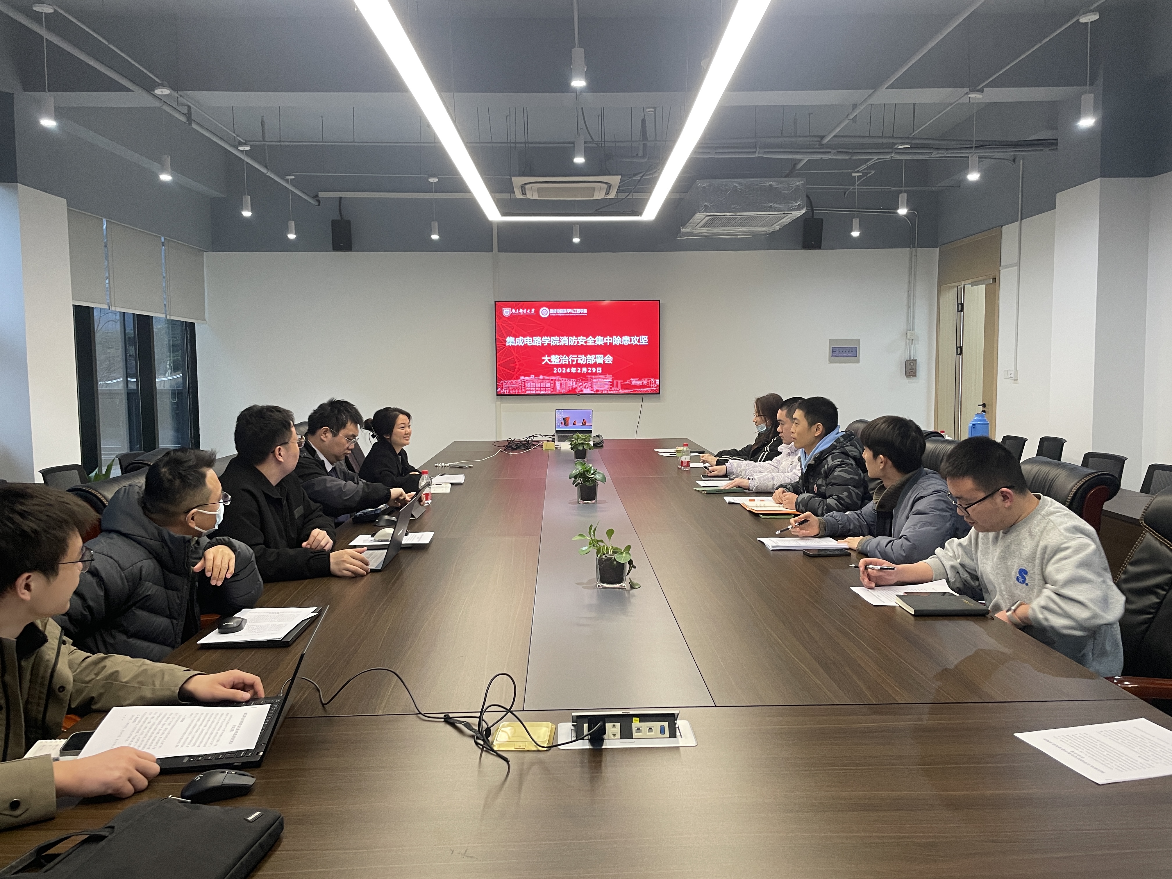 蔡志匡院长对具体工作进行了部署:1.全院师生要加强学习此次消防安全集中除患攻坚大整治行动文件,要善于发现问题,解决问题,明确分工,责任到人,落实到位;2.要严格按照学校文件通知的时间节点,全面排查消防安全风险隐患,尤其针对学院实验室、学生宿舍等重点场所,排查彻底,不留死角,要登记上账、闭环管理,分类施策、逐一销账;3.要加强消防安全培训和应急疏散演练,物业要强化值班值守;4.浦口办学点要同步推进,保持与浦口高新区科创集团联动,确保工作效果。