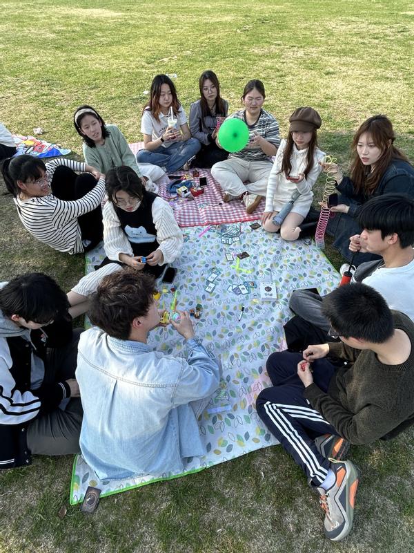 在各种体力游戏之后,同学们又坐在草坪上,开动脑筋,进行一场场脑力风暴。“害”你在心口难开、长句子接龙等游戏,让同学在享受春风和欢声笑语的同时,结束本次意义非凡的班会活动。