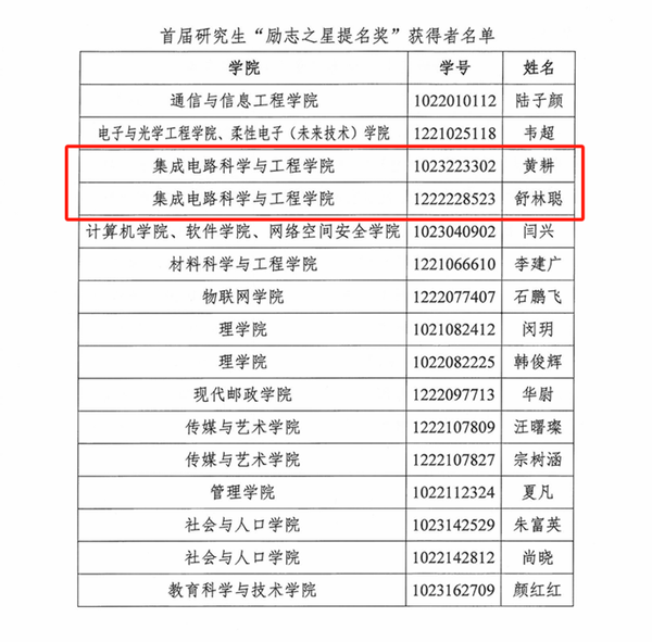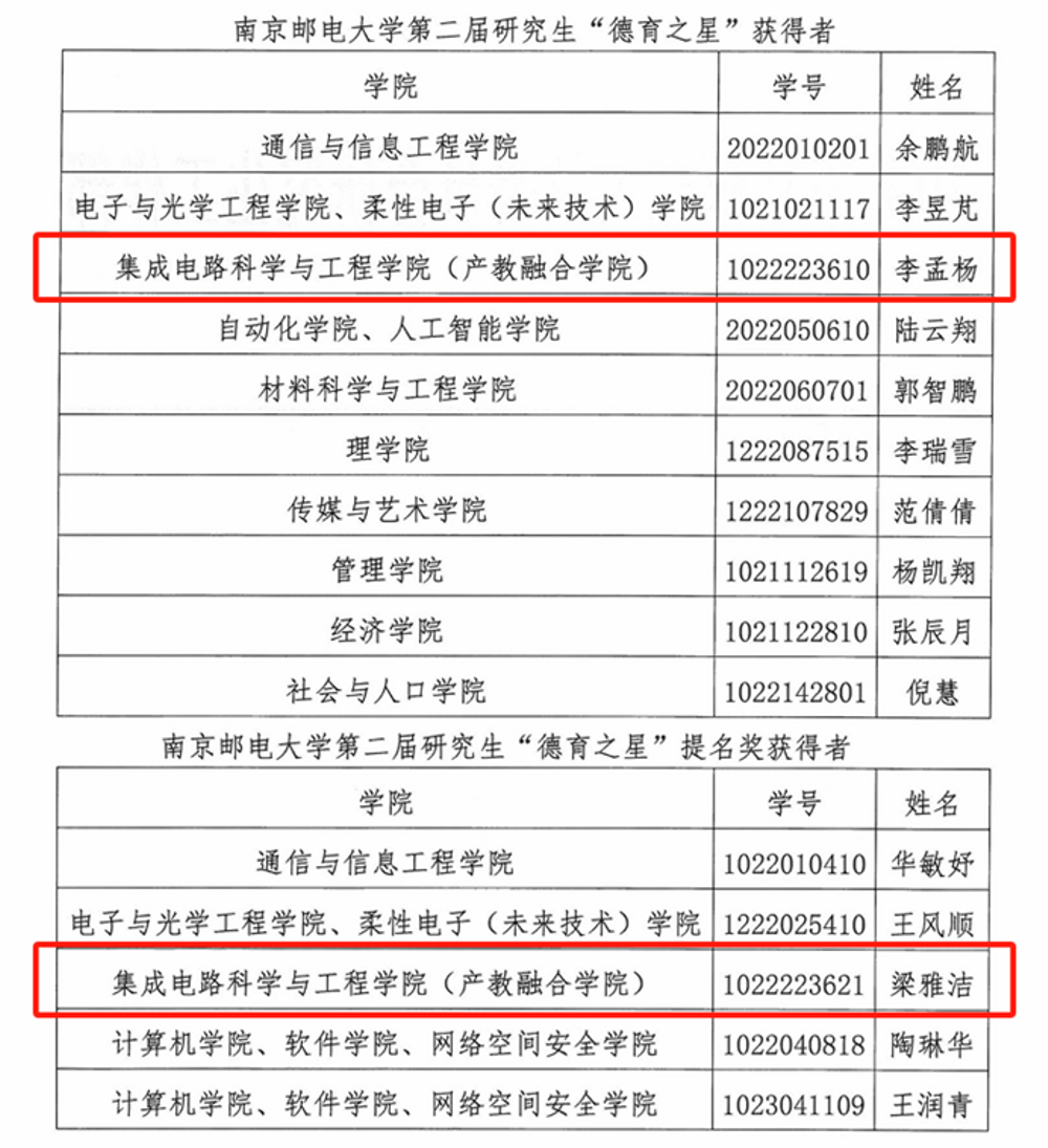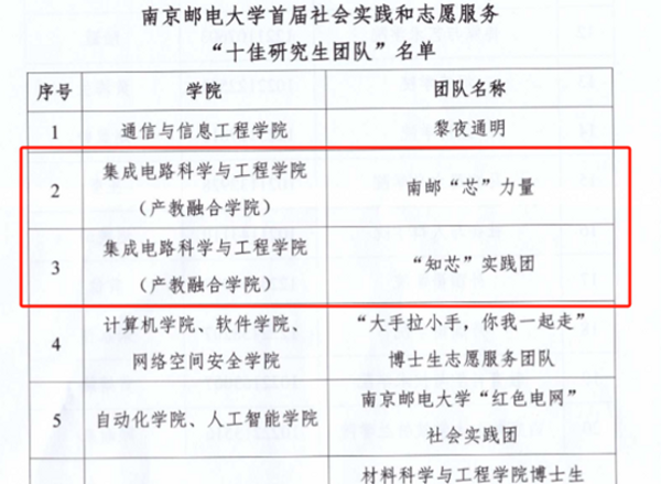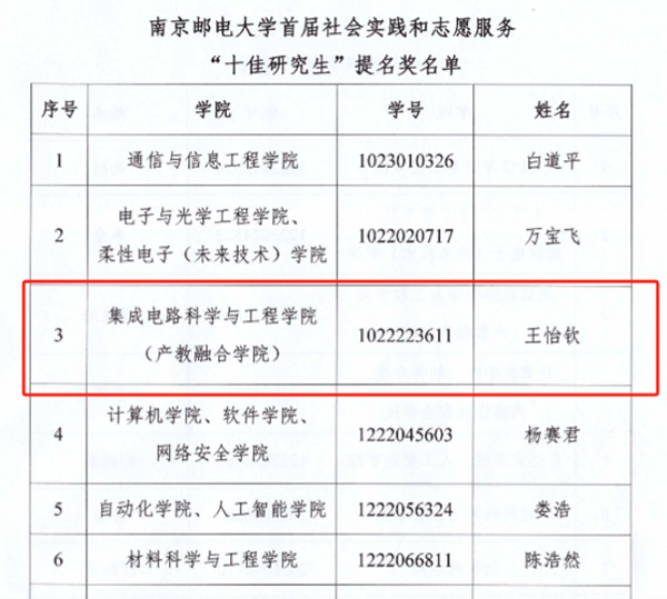 黑料不打烊 南邮“芯”力量、“知芯”实践团荣获黑料不打烊 首届社会实践和志愿服务“十佳研究生团队”,李孟杨同学获黑料不打烊 第二届研究生“德育之星”;梁雅洁同学获黑料不打烊 首届社会实践和志愿服务“十佳研究生”及“德育之星”提名奖;王怡钦同学获黑料不打烊 首届社会实践和志愿服务“十佳研究生”提名奖;舒林聪、黄耕同学获黑料不打烊 2024年研究生“励志之星”提名奖。