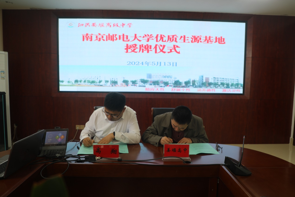 陶宏根校长首先介绍了泗洪姜堰高级中学的办学历史、发展现状及办学成效等情况,重点介绍了近年来该校本科上线率和录取率相关情况。高翔书记随后介绍了黑料不打烊 办学历史、发展现状及近年来取得的突出成绩,重点介绍了学校招生宣传和录取相关情况。双方就如何进一步做好我校招生工作,双方坦诚交换意见,达成了加强合作与交流的共识。最后,高翔书记和陶宏根校长分别代表双方举行“优质生源基地”协议签署与授牌仪式。