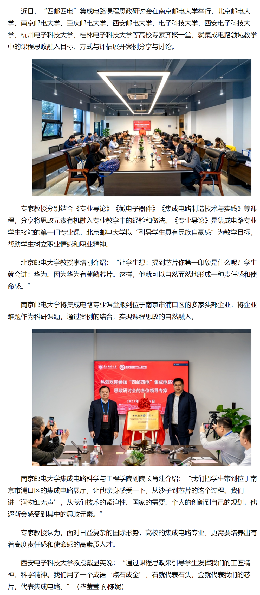 【中国江苏网】“四邮四电”集成电路课程思政研讨会在南邮举行