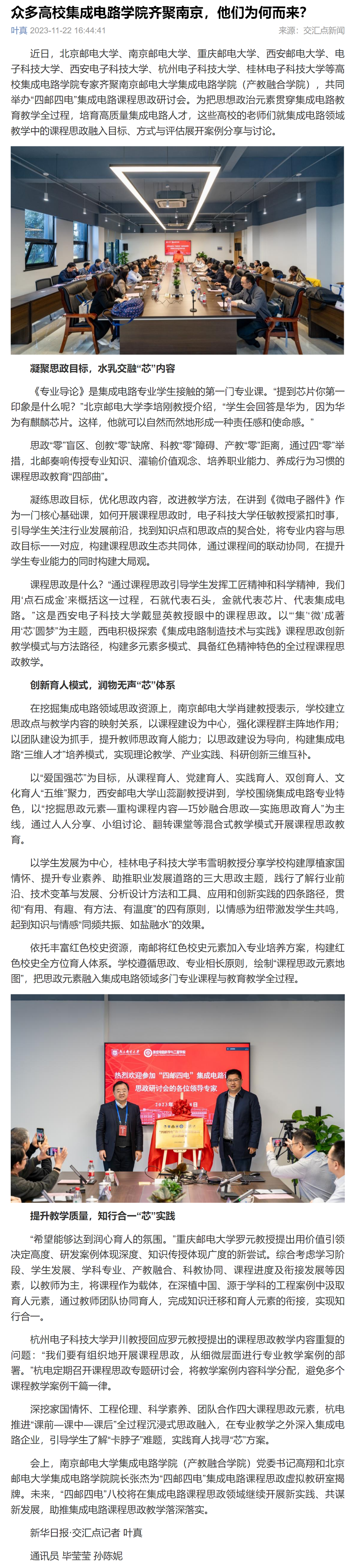【新华日报客户端】众多高校集成电路学院齐聚南京,他们为何而来?