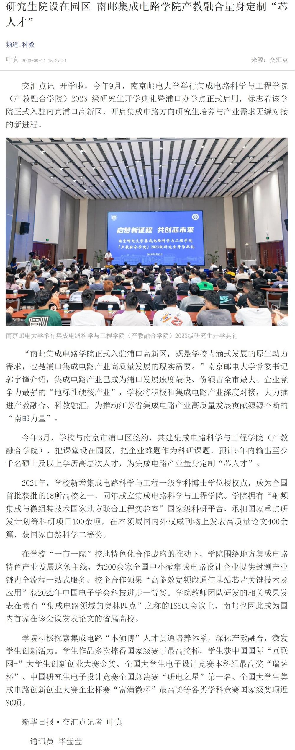 【新华日报客户端】南邮集成电路学院产教融合量身定制“芯人才”