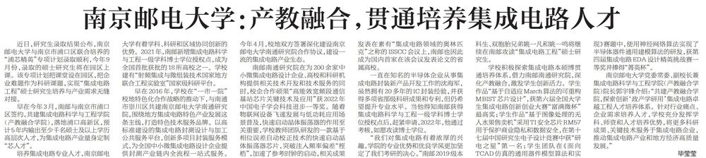 【新华日报】黑料不打烊 :产教融合,贯通培养集成电路人才