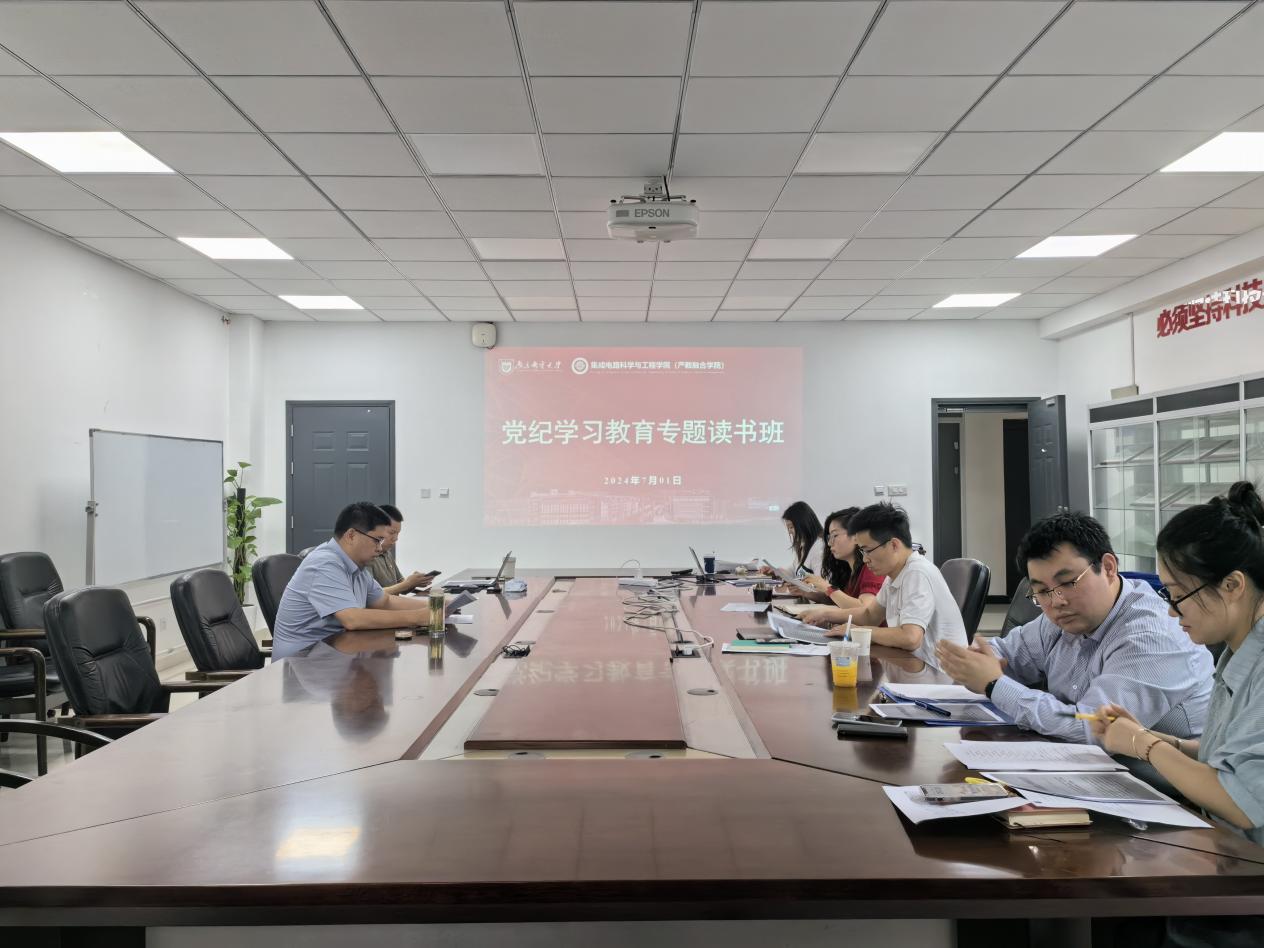 2024年7月1日,黑料不打烊 党委党纪学习教育专题读书班在电光B楼223会议室专题学习校党委组发〔2024〕14号文件精神,学院党委书记高翔主持学习会,党纪学习教育读书班全体成员参加学习。