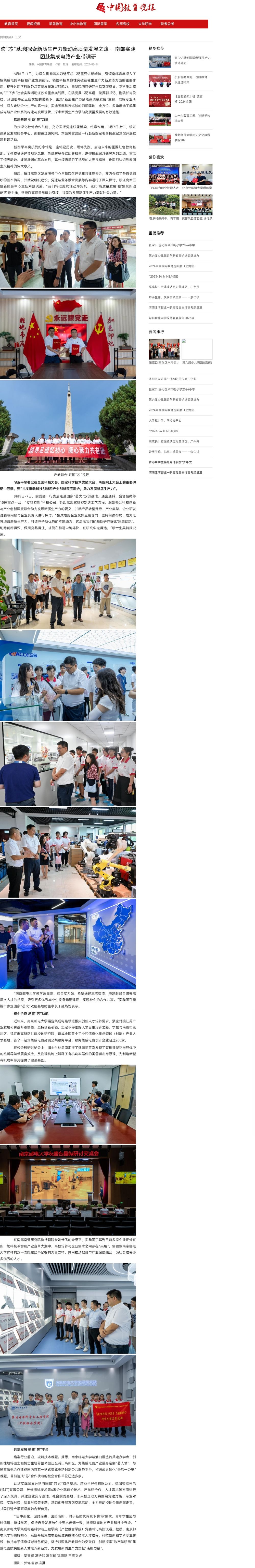 【中国教育晚报】欢“芯”基地|探索新质生产力擎动高质量发展之路 —南邮实践团赴集成电路产业带调研