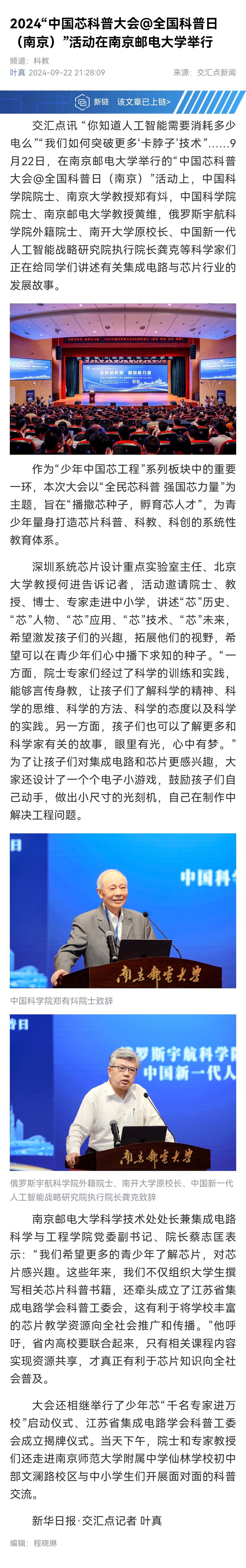 【交汇点新闻】2024“中国芯科普大会@全国科普日(南京)”活动在黑料不打烊 举行