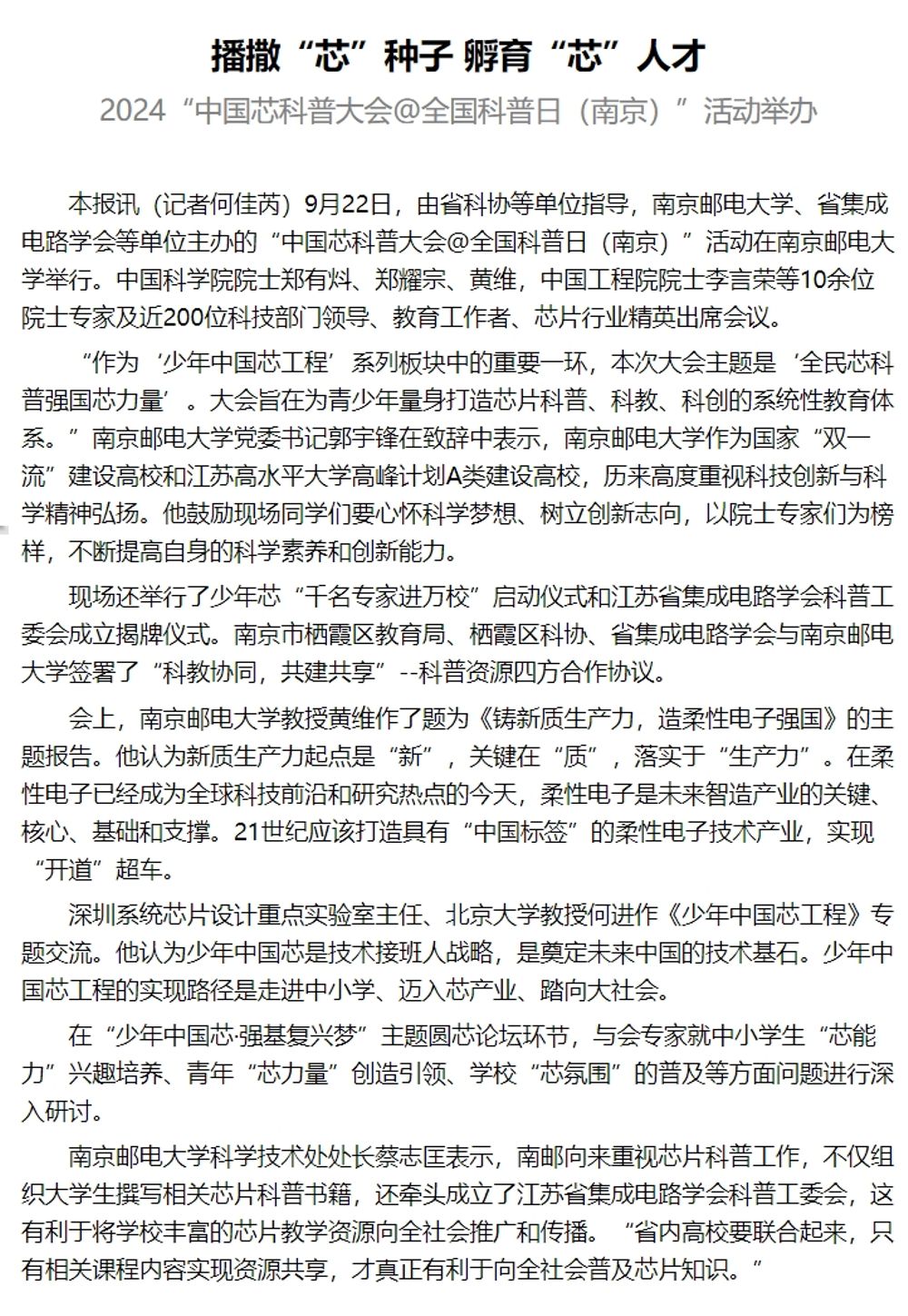【江苏科技报】播撒“芯”种子 孵育“芯”人才