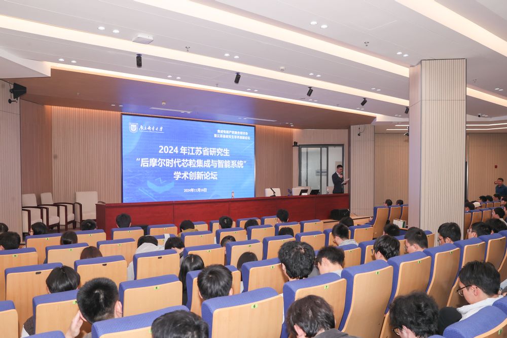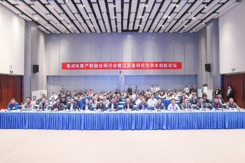 11月16日,集成电路产教融合研讨会暨江苏省研究生学术创新论坛在浦口高新区召开。活动旨在深化校际、校企合作,整合多方资源,搭建集成电路领域学术交流与人才培养平台,推动集成电路学科建设、人才培养与科研创新,促进科教人才一体化发展。浦口区委常委、副区长渠慎坤,浦口高新区管委会主任陈金飞,东南大学首席教授、江苏省集成电路学会理事长时龙兴,北京大学集成电路学院党委书记王源,南京大学医学院教授吴锦慧,广东省科学院半导体研究所教授范建林,我校党委常委、副校长王友国,校研工部部长、研究生院副院长何海洋,校产学研合作处副处长高辉等出席会议,学校职能部门负责人、集成电路学院教师和学生代表参加会议。