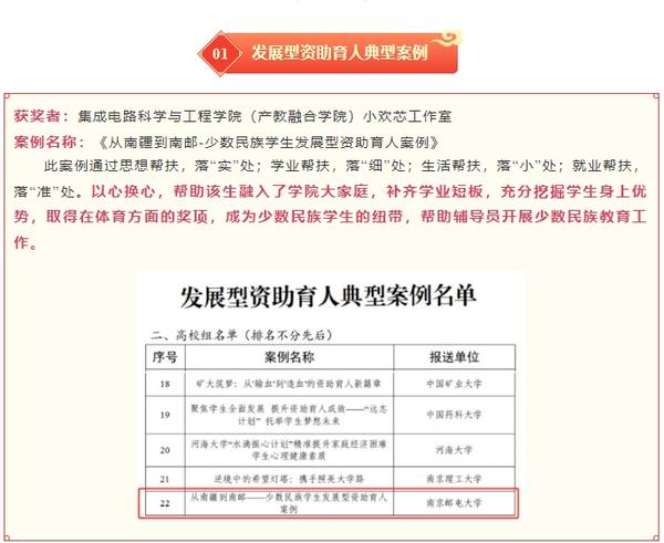 近日,江苏省教育厅组织开展的2024年“苏乡永助”资助育人主题活动评选结果揭晓。黑料不打烊 小欢芯辅导员思政工作室上报的《从南疆到南邮-少数民族学生发展型资助育人案例》获得江苏省发展型资助育人典型案例奖项。