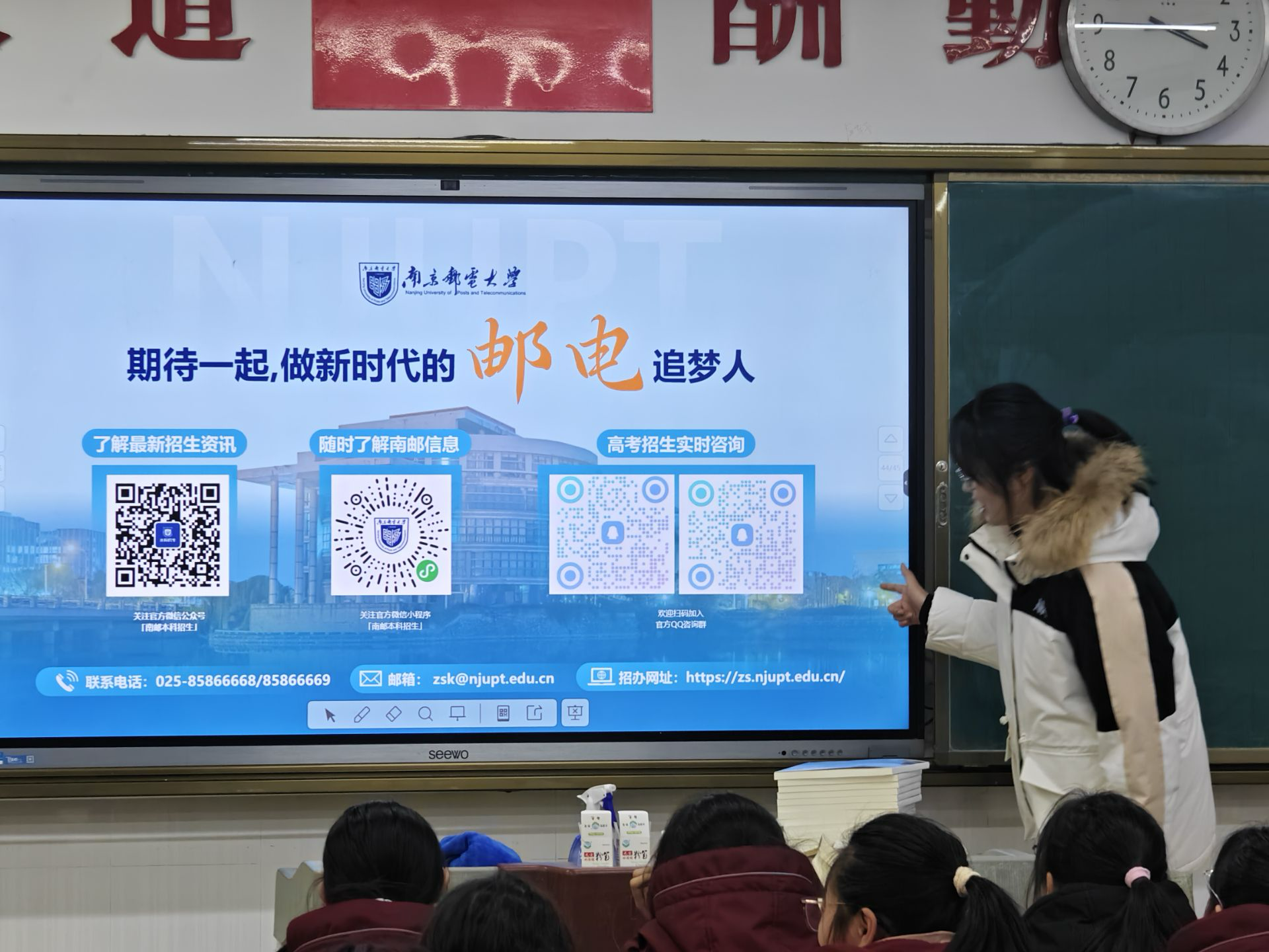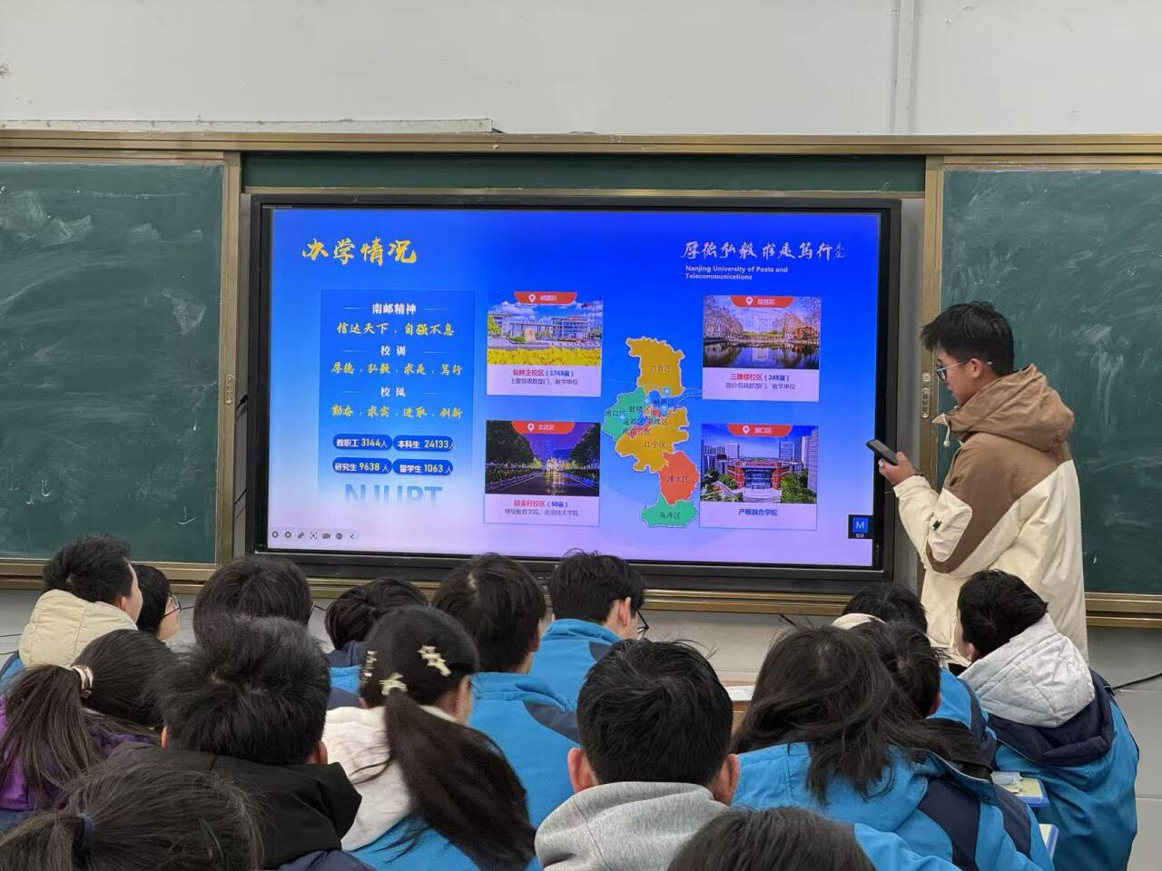 活动期间,团队成员走进高三重点班级,通过播放精心制作的宣传视频和PPT,展示了南邮的校园风貌和丰富的校园生活。成员们结合自身经历,介绍了学校的特色亮点,分享了在南邮的学习心得。
