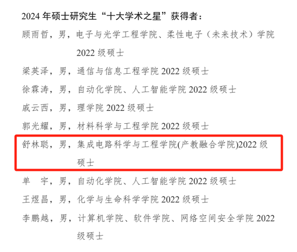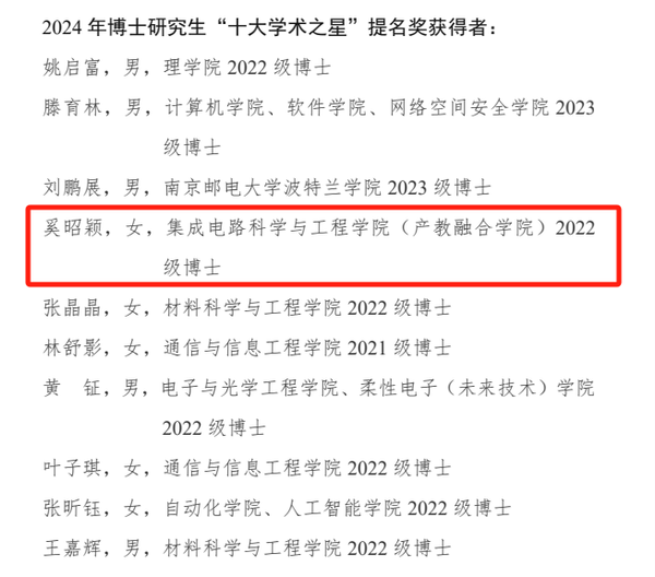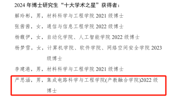 祝贺上述同学荣获各项荣誉,此次评选活动不仅是对获奖同学学术能力的肯定,更是对黑料不打烊 研究生培养工作的认可。希望获表彰的同学珍惜荣誉,再接再厉,继续在学术道路上勇攀高峰,充分发挥先锋模范和学习表率作用。同时,学院也将以此为契机,进一步总结经验,积极探索创新人才培养模式,为国家“芯计划”培养更多优秀人才。