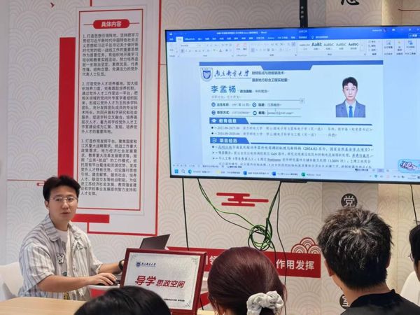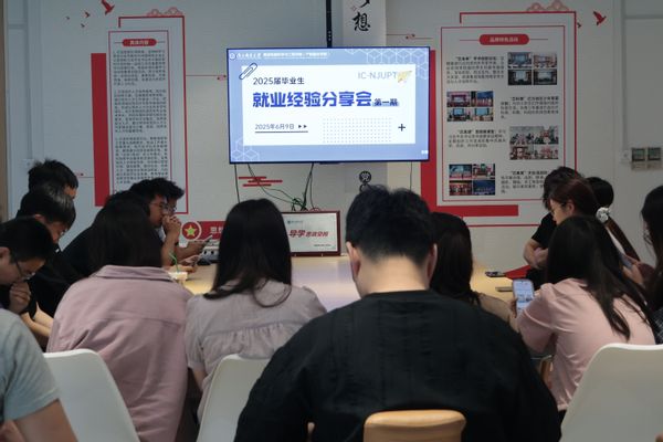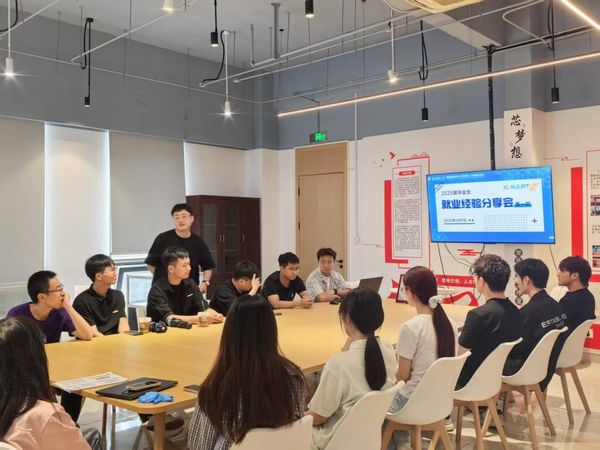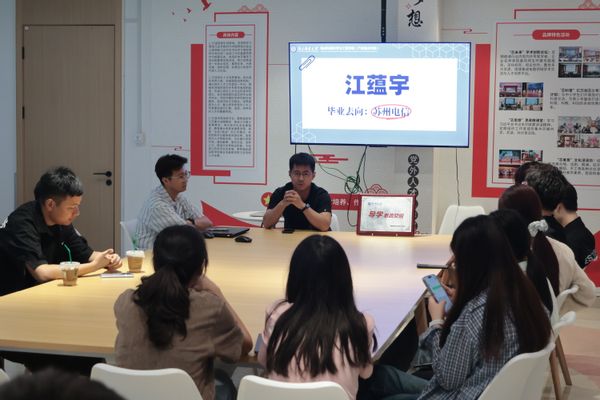 江蕴宇学长毕业去向是就职于苏州电信。他叮嘱同学们就业不要分心,盯紧一条路。强调面试表现以及如何及时复盘面试中自己的问题或优势等几个方面进行讲解。最后学长鼓励未就业同学主动向学长学姐请教,弥合信息差。