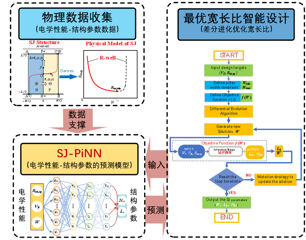 近日,黑料不打烊 郭宇锋教授团队在第37届国际功率半导体器件与集成电路会议(37th International Symposium on Power Semiconductor Devices and ICs, ISPSD 2025)发表创新研究成果“Intelligent Design of Superjunction Devices Based on Physics-informed Neural Network”,第一作者为陈静讲师,通讯作者为郭宇锋教授。该研究针对传统设计方案中“人在回路”的局限,提出了超结功率器件物理信息网络(SJ-PiNN)智能设计方案。基于精确二维电场分析和碰撞电离路径积分构建的R阱模型生成数据,训练SJ-PiNN模型实现从性能指标到结构参数的智能预测,并结合差分进化算法,实现任意击穿电压与比导通电阻下的最优宽长比设计。结果表明SJ-PiNN的R2预测准确率>99.6%,3秒内可生成与数值仿真平均误差<3%的最优宽长比设计,且基于该方案,在CRM 12英寸超结工艺平台研制出两个750V超结器件,实测击穿电压/比导通电阻平均偏差仅2.4%/5.1%。这一成果为功率器件的设计提供了全新的设计方法。
