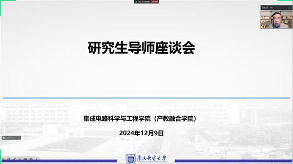 为探讨和完善研究生教育评价体系,同时关注导师与学生之间的交流问题,以促进研究生教育的全面发展,12月9日,学院在电光B楼223会议室开展研究生导师交流座谈会。本次会议采用线上与线下结合的形式,院关工委成谢锋教授、学院部分研究生导师线上参会,座谈会由学院副院长靳雷生主持。
