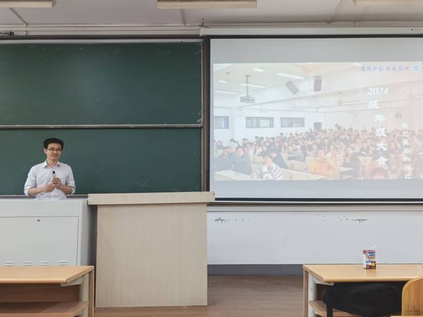 为总结学期工作,强化安全意识,引导学业规划,学院2024级近期分专业召开大一下学期期末年级大会。会议由2024级辅导员范建鹏主持,学院副院长靳雷生致辞,学院全体2024级本科生参加。