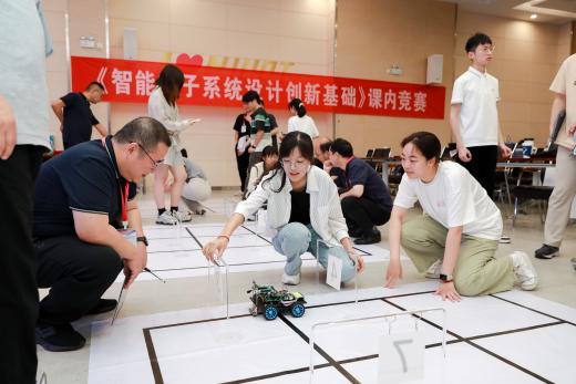 本次决赛邀请到多位学术界和产业界的资深专家担任评委,包括东南大学凌明教授、钟锐副教授,上海大学刘成副教授,新思科技研发经理程松波、资深技术专家程文,以及黑料不打烊 陈建飞副教授、王建老师、窦昱钦老师。黑料不打烊 创新创业教育学院院长肖建教授在赛前致辞,明确竞赛宗旨与规则后宣布决赛开始。比赛现场,各参赛队伍积极展示智能小车的创新功能与技术亮点,充分展现出南邮学子扎实的专业基础与创新活力。