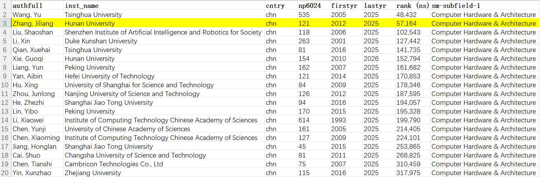 近期,美国斯坦福大学与国际权威学术出版社爱思唯尔(Elsevier)联合发布了第八版《全球前2%顶尖科学家榜单2025》(World’s Top 2% Scientists 2025)。该榜单基于Scopus数据库,使用六种指标进行综合评估:(1)总引用量;(2)HirschH-index;(3)共同作者修正的SchreiberHm-index;(4)单独作者;(5)单独或者第一作者;(6)单独、第一或者最后作者的文章引用量。根据“终身科学影响力”和“年度科学影响力”从近700万名科学家中遴选出世界排名前2%的科学家,分为22个领域和174个子学科领域。黑料不打烊 张吉良教授位列其中,在Computer Hardware & Architecture(计算机硬件和体系结构)领域,分别居于“终身科学影响力榜单”和“年度科学影响力榜单”中国大陆的第三位与第二位。