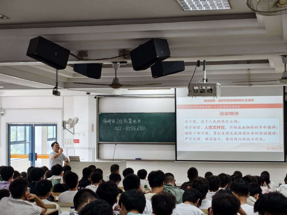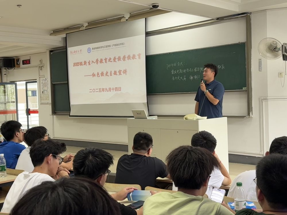 为了帮助新生深入了解学校八十三载办学历程中积淀的红色基因与文化传统,增强对学校的认同感、归属感和荣誉感,引导其树立正确的价值观和成才观,9月,学院在教2-301和教2-302教室成功举办了2025级新生入学教育系列活动之“爱校荣校”主题教育。本次活动由学院2025级辅导员林钰程和侯士明主讲,面向全体新生开展了以南邮校史为核心的红色基因教育,为同学们开启大学生涯注入精神动力。