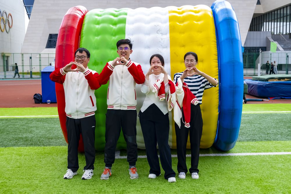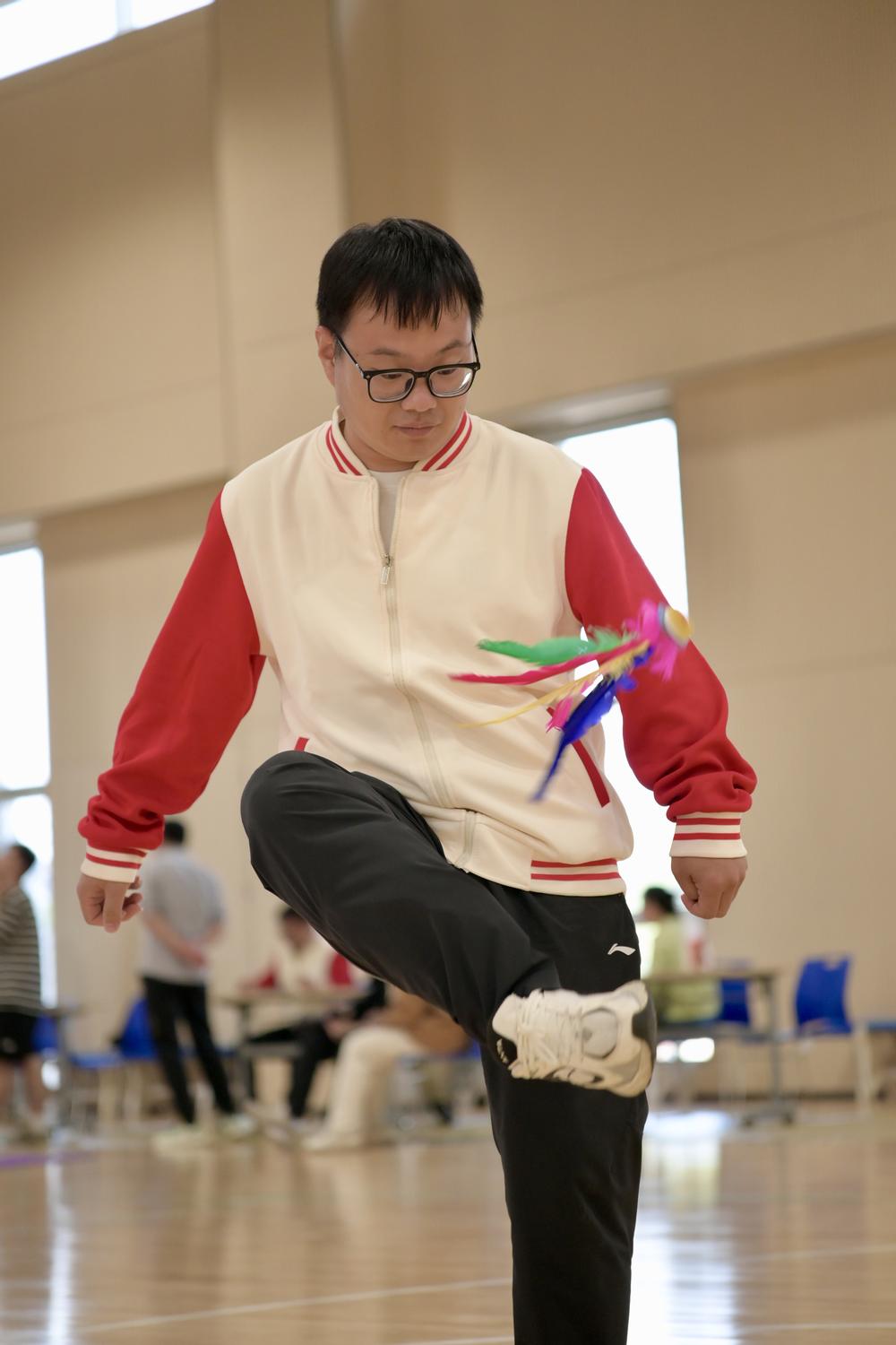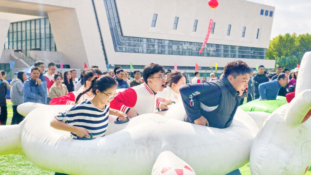 走下讲台,放下教案,老师们在赛场上开启了另一番精彩。本届运动会,学院教职工踊跃报名,参与了多项趣味项目。在“平板支撑”耐力赛区,气氛紧张而专注。老师们以标准姿势长久支撑,赢得了围观师生的阵阵赞叹与加油,生动诠释了“久久为功”的坚韧精神。与此同时,“踢毽子”比赛场地则充满了欢声笑语。五彩的毽子在空中飞舞,划出一道道优美的弧线。老师们身姿轻盈,脚法灵巧,盘、磕、拐、蹦,动作一气呵成。在备受瞩目的4×100米混合接力赛中,由学院青年教师组成的接力队配合无间,他们如电路信号般高效精准地传递着接力棒,为了集体的荣誉奋力冲刺。此外,在“龟兔赛跑”、“动感五环”、“拾贝”等趣味项目中,老师们童心未泯,通力协作,赛场上传来的欢声笑语,成为凝聚团队力量的最佳纽带。