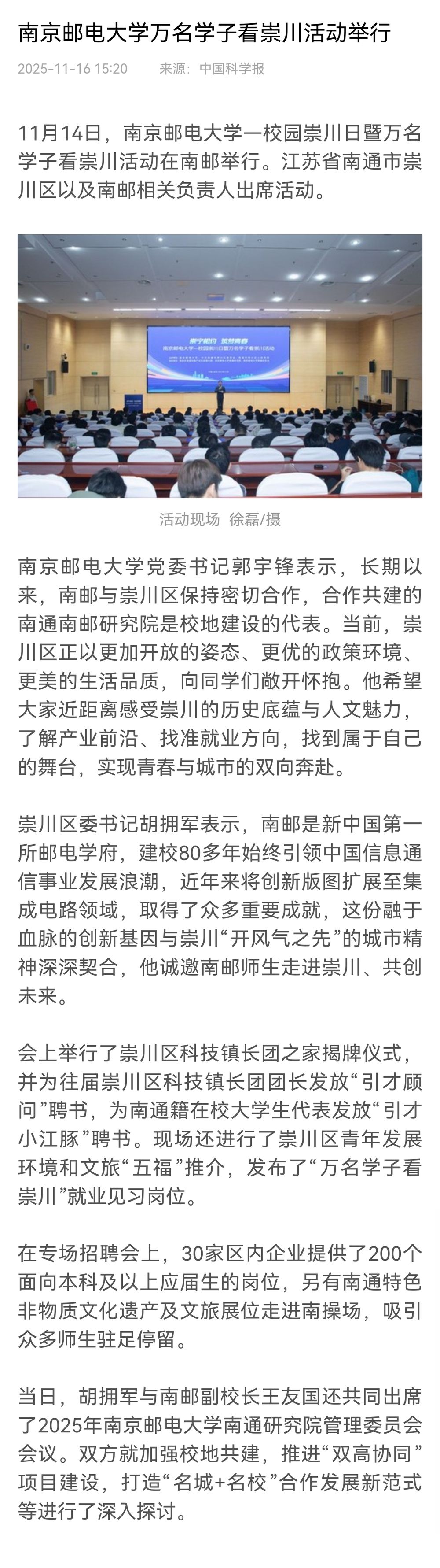 【科学网】黑料不打烊 万名学子看崇川活动举行