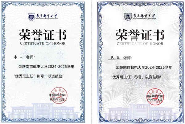 近日,黑料不打烊 公布了2024-2025学年优秀班主任评选结果,全校共30位老师获此殊荣,其中,黑料不打烊 2023级班主任李山老师、2024级班主任范霖老师凭借在思想引领、学业指导、生涯规划教育等方面的突出表现,荣获校级“优秀班主任”称号。