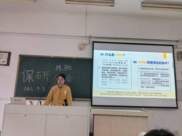 为帮助低年级同学提前了解保研流程与备考策略,搭建朋辈经验传承平台,进一步营造学院勤学善思、互帮互助的良好学风,为同学们未来的升学深造指明方向、注入动力。4月8日14点,学院保研经验分享交流会在教三103教室顺利举行。本次活动由23级微电子专业钱姿安同学主持,大二、大三学子参与学习交流。